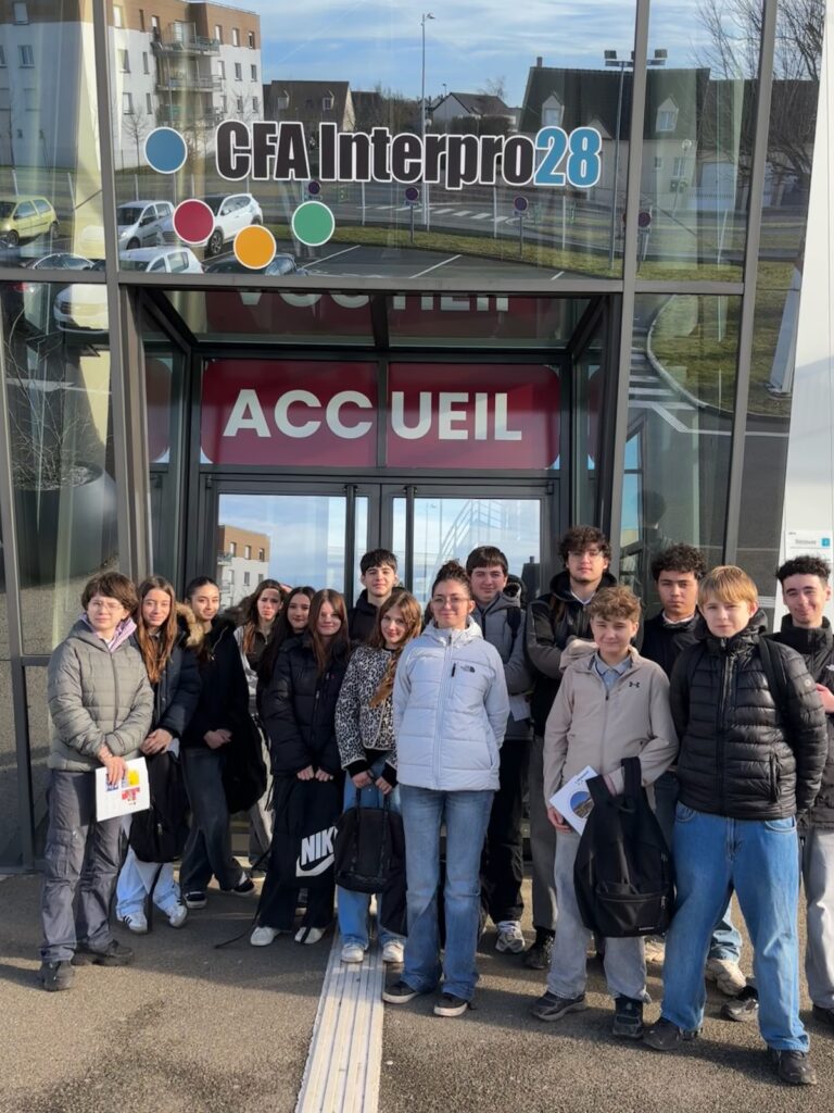 La classe, lors de sa visite au CFA Interprofessionnel d’Eure et Loir, à Chartres.
