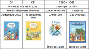 - Une programmation de catéchèse et de culture chrétienne en primaire :